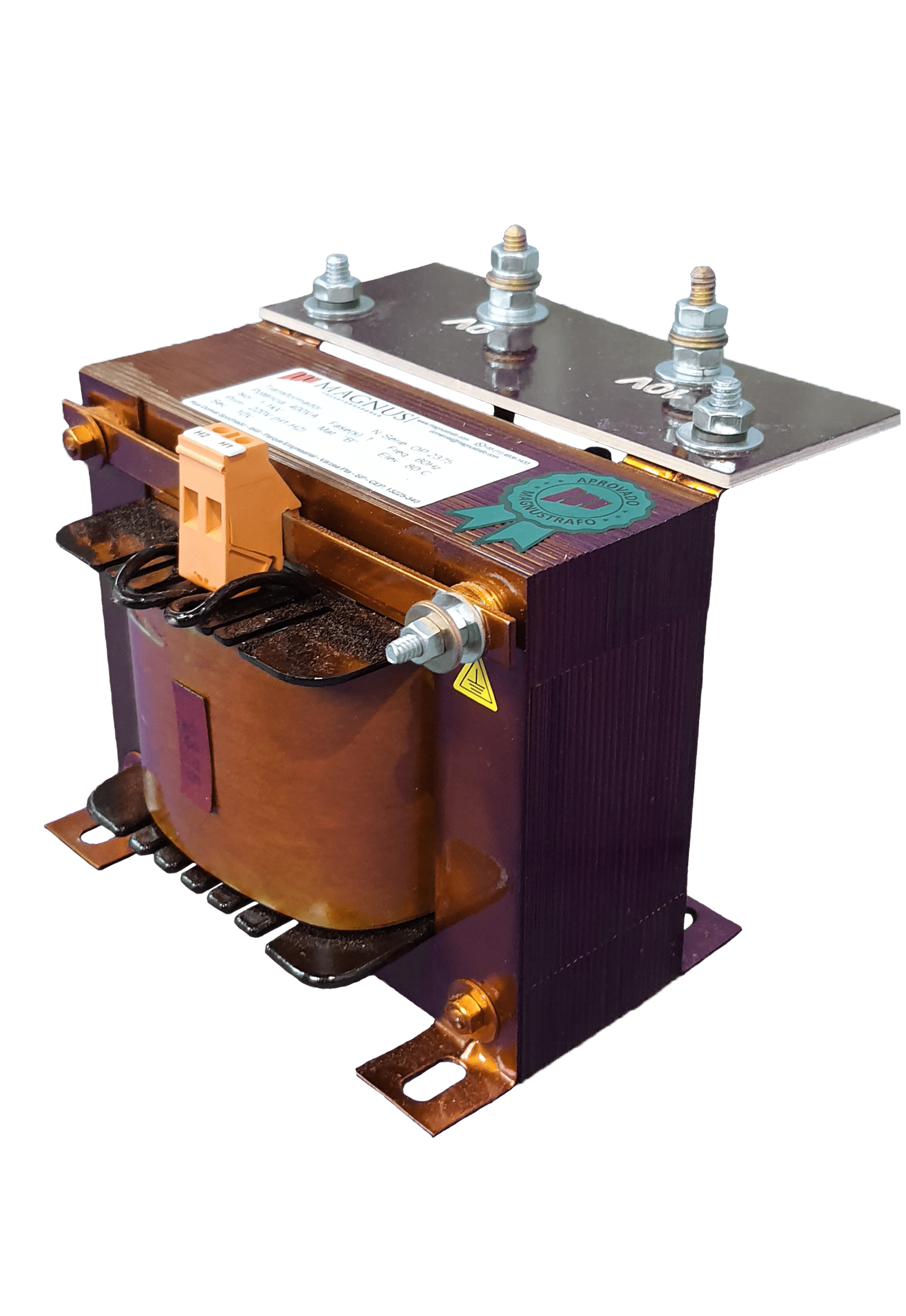Os transformadores de comando ou transformadores monofásicos modelo EI destinam-se a alimentação de circuitos de comando industriais, tais como: circuitos auxiliares para comandos de acionamento, sinalização ou proteção. Devido à isolação galvânica entre primário e secundário, esse equipamento também propicia a isolação elétrica entre os circuitos de rede e carga, fornecendo maior segurança ao circuito alimentado e ao operador. O transformador de comando atua como limitador de capacidade de curto-circuito, redutor de tensão de circuitos de potência e atenuador em cargas não lineares (harmônicas) na instalação.